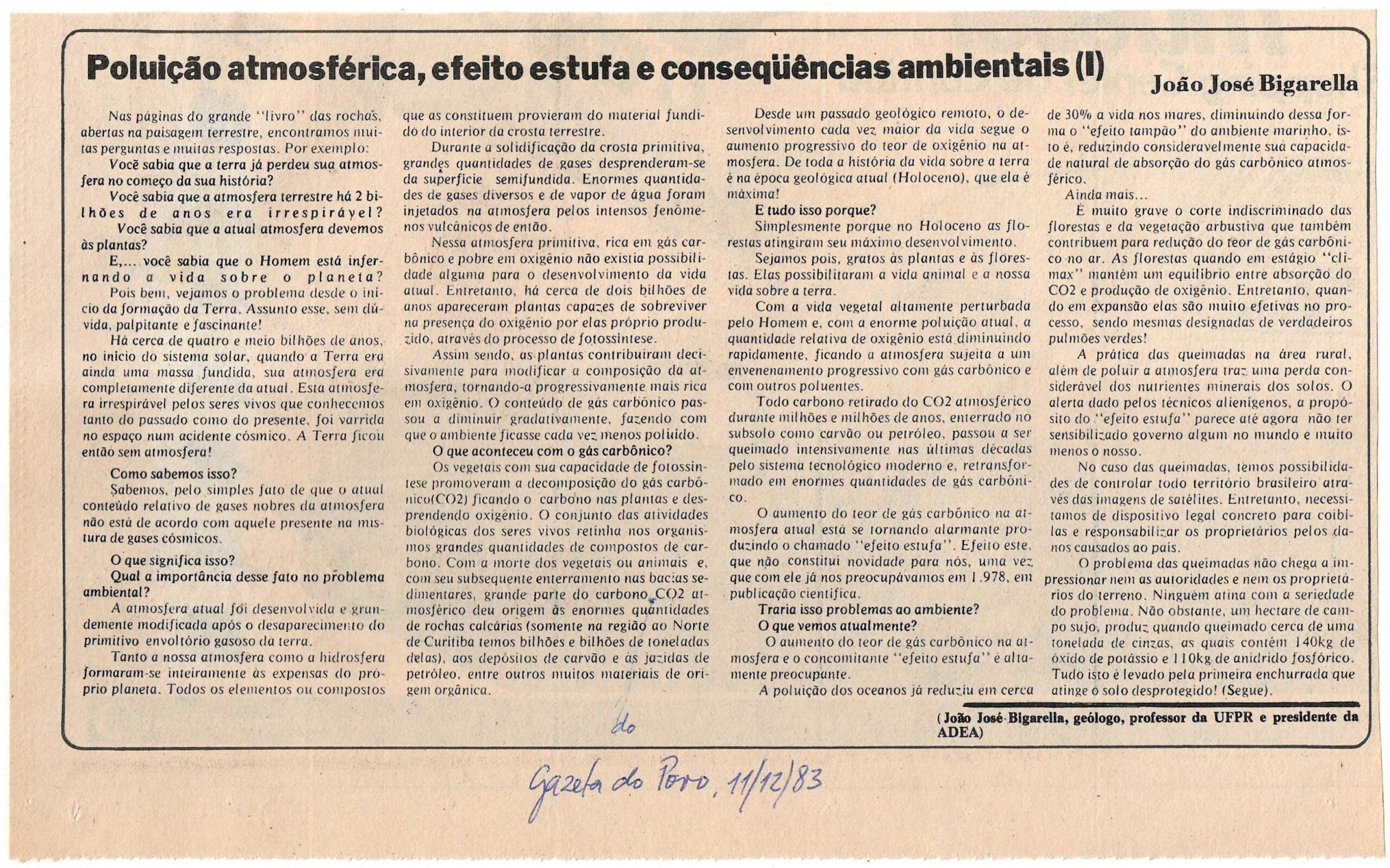 (João José Bigarella, geólogo, professor da UFPR e presidente da ADEA)